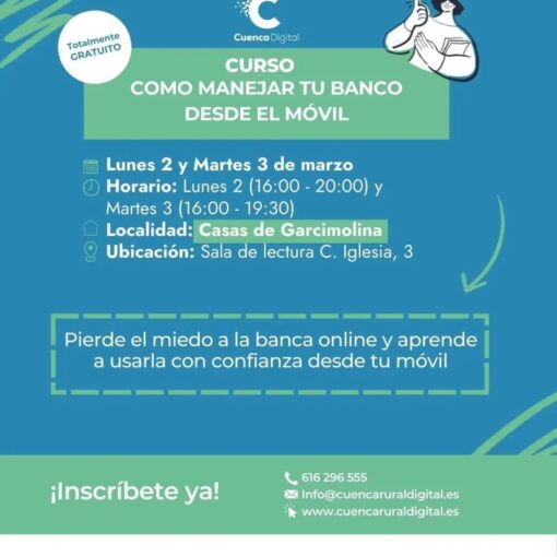 La localidad de Casas de Garcimolina acogerá durante el mes de marzo dos talleres formativos gratuitos diseñados para romper la brecha digital. Estas formaciones, impulsadas por Cuenca Digital, se llevarán a cabo en la Sala de lectura C. Iglesia, 3, con el objetivo de dotar a los vecinos de herramientas […]