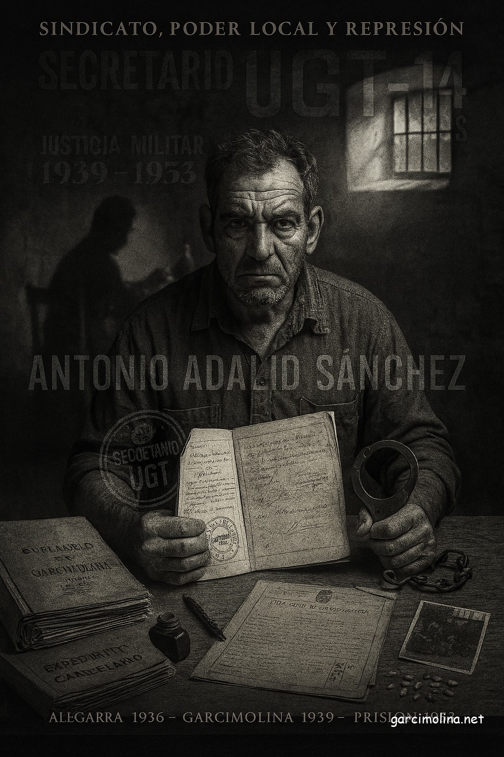 Antonio Adalid por Ángel Martínez|Publicada febrero 8, 2026-en dimensiones 1024 × 1536 Navegación de imágenes Anterior Siguiente Antonio Adalid Sánchez: De secretario de la UGT a condenado por auxilio a la rebelión. Una doble persecución judicial Suscribirse Compartir La Asociación de Vecinos y Mayores «Peña el Pardo» colabora económicamente con los gastos necesarios para mantener garcimolina.net