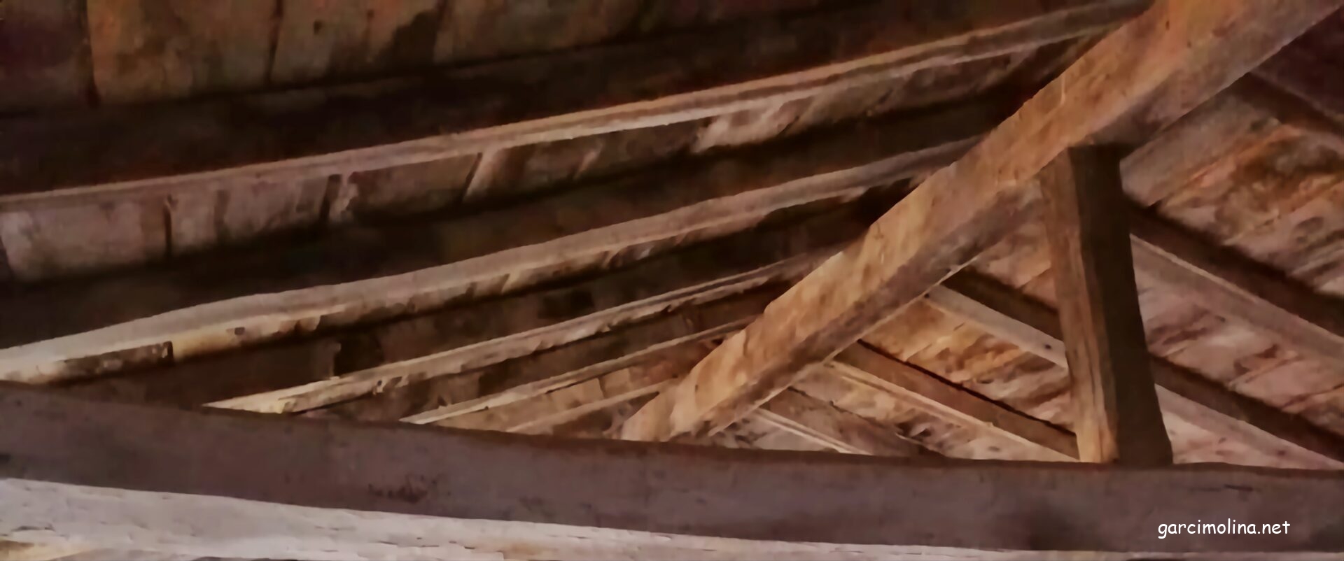 - La viga que sostiene el techado, está apuntalada para reforzar y evitar su colapso.