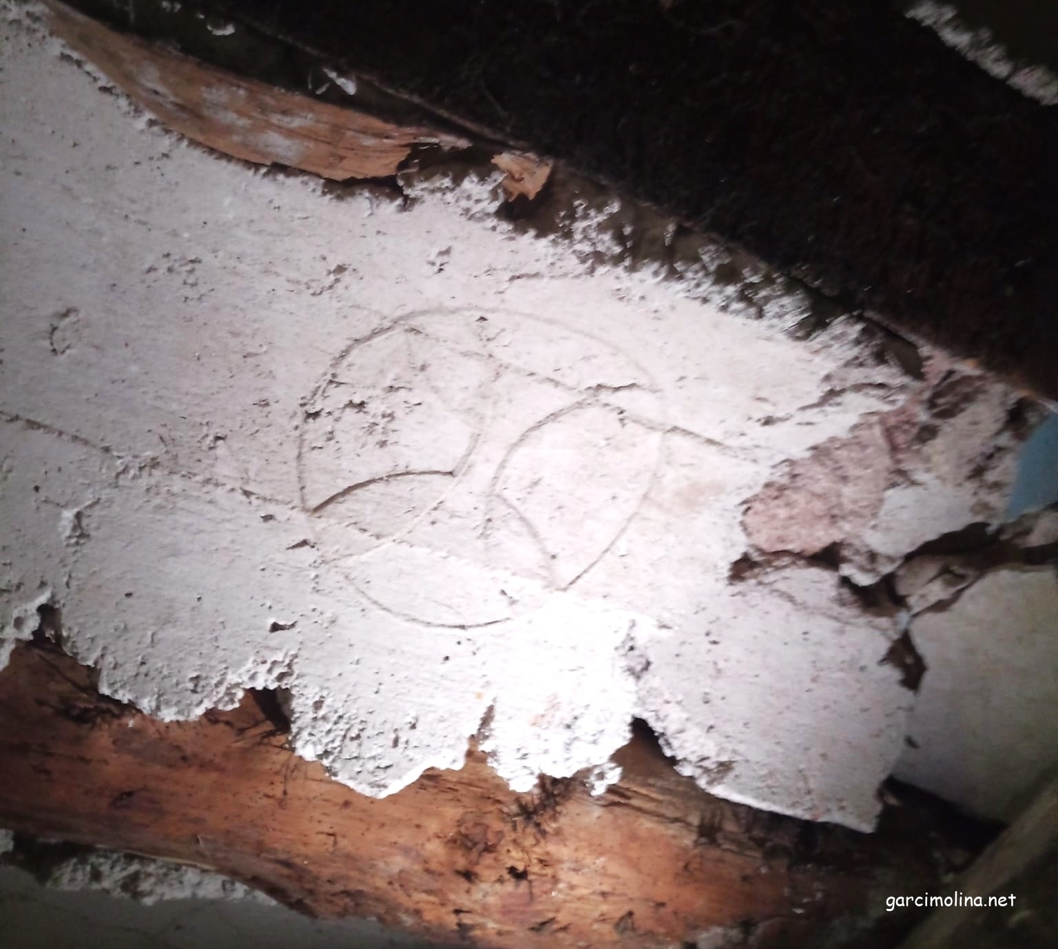 Detalle de cruces, en los revoltones del techo de la cuadra, casa de Felipe y Bernardina. Casas de Garcimolina
