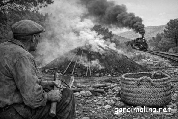 Además del carbón vegetal, las fraguas y herrerías de la comarca necesitaban un combustible mineral de alto poder calorífico. Durante la posguerra, y especialmente en los años 50, los herreros de Garcimolina, la familia Martínez y Valero, accedieron a una fuente inesperada de lignito —procedente de las locomotoras de vapor de la línea Aragón‑Cuenca— a través de un pequeño «mercado negro» organizado en torno a las vías del ferrocarril. Este fenómeno, apenas documentado en las fuentes oficiales, pero conservado en la memoria oral, ilustra las estrategias de supervivencia de una economía rural sometida a racionamiento.