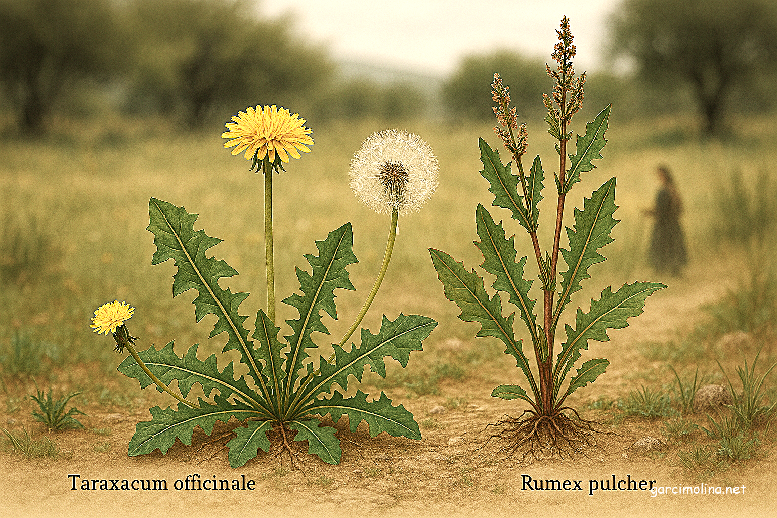 Tornachos (Taraxacum officinale) y Romazas (Rumex pulcher)