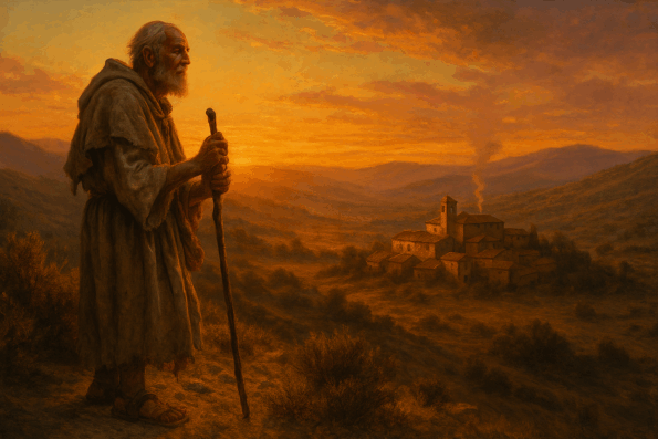 Al atardecer, de la segunda semana de vuelta, desde lo alto de “La Ceja”, avistó por fin el caserío fortificado de Garcimolina, recortado contra el cielo en el valle del río Algarra. El humo que se elevaba de una chimenea dibujaba espirales lentas en el aire quieto. No era el espectáculo de una gran villa, sino la humilde promesa de un cobijo. Una paz profunda, corpórea, se apoderó de él. No era la armonía de la redención conseguida, sino la tregua de quien ha dejado de luchar contra sí mismo.