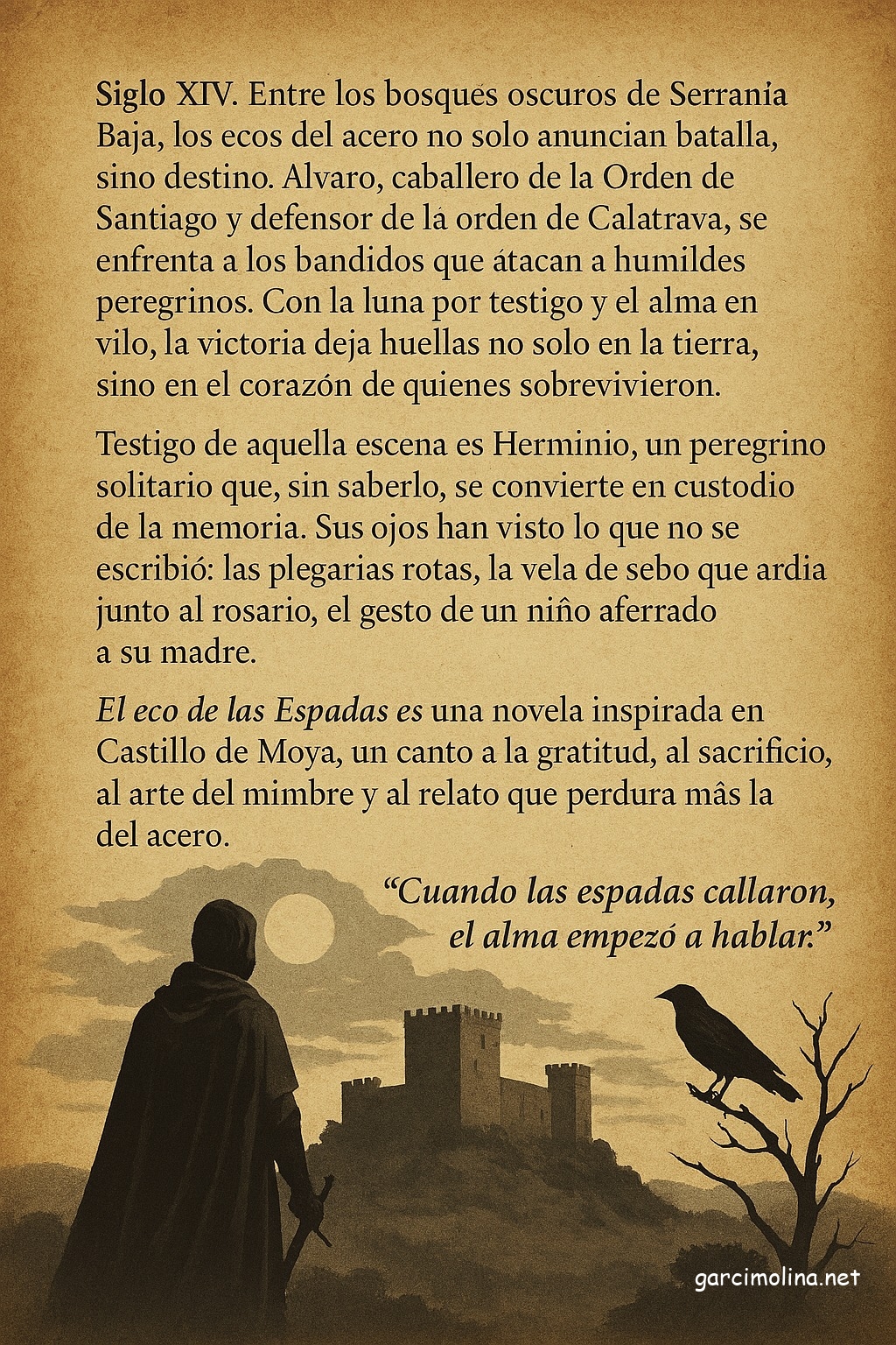 «El eco de las Espadas» es mucho más que una novela: es un viaje fascinante al corazón del Castillo de Moya. Ángel Martínez, tras una intensa labor de investigación, nos ofrece una obra que combina con maestría el rigor histórico y la emoción de la ficción. Dividida en dos partes —una narración ficticia de cinco capítulos y una historia novelada de diecisiete— esta novela te sumerge en un universo donde el pasado cobra vida y las espadas aún resuenan en la memoria.