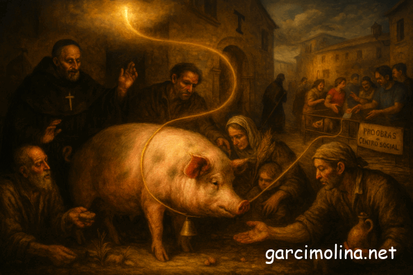 En el siglo XIV, el Reino de Castilla se encontraba inmerso en un periodo de profundas transformaciones sociales, económicas y demográficas, marcado por crisis de subsistencia, epidemias y una religiosidad popular que permeaba todos los aspectos de la vida cotidiana. En los pueblos, una campanilla anunciaba más que el paso del ganado; marcaba un acto de caridad y comunidad. Era el sonido del «cerdo campanillero», un animal que, bajo la protección de la Orden de los Antonianos, se convirtió en símbolo de una solidaridad que hoy todavía perdura en nuestras tradiciones rurales.