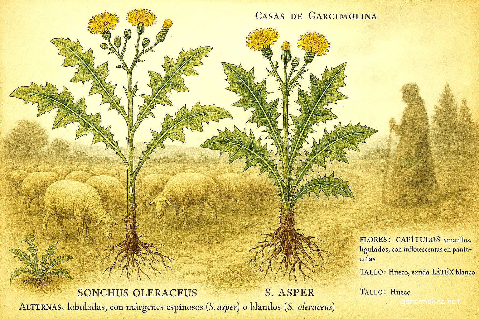 CERRAJILLAS Y MEMORIA RURAL: La Baja Serranía de Cuenca, enclave excepcional, para el estudio de los saberes etnobotánicos aplicados a la subsistencia. Entre su flora utilitaria destacan Las Cerrajillas (Sonchus oleraceus L. y S. asper (L.) Hill), asteráceas silvestres que encapsulan la relación simbiótica entre las comunidades rurales y su entorno.