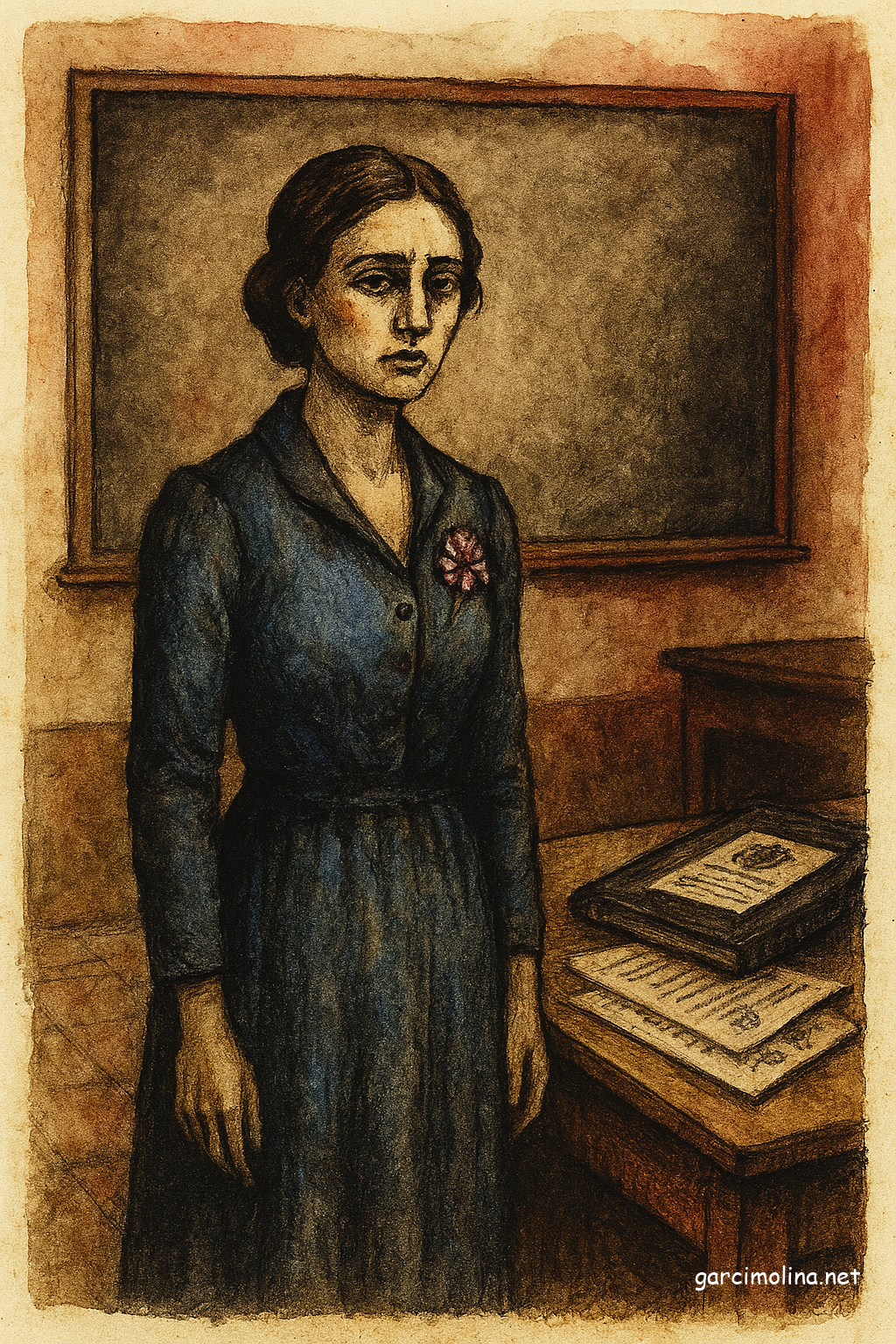 Perpetua Jiménez Millán por Ángel Martínez|Publicada noviembre 3, 2025-en dimensiones 1024 × 1536 en La doble condena de una maestra republicana Navegación de imágenes Anterior Siguiente Perpetua Jiménez Millán Pulsa aquí para seguirnos en Whatsapp ________________________________________________________________________________ Comparte esto: Haz clic para compartir en WhatsApp (Se abre en una ventana nueva) WhatsApp Tweet