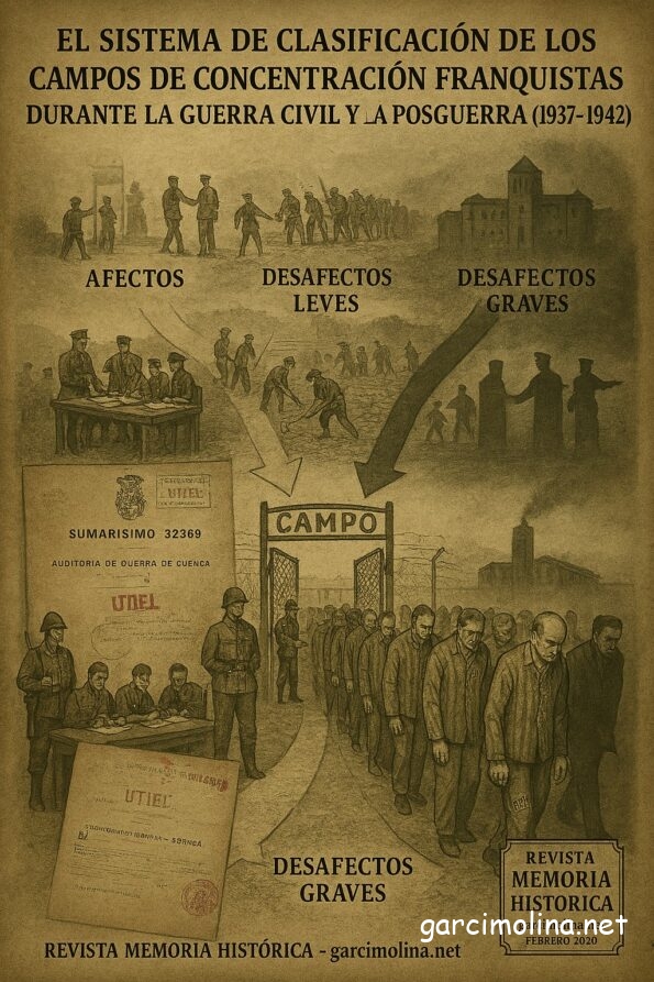 La recuperación de la memoria histórica en el ámbito local exige, como paso previo a la identificación de víctimas individuales, la reconstrucción del entramado represivo en el que estas se atraparon. Para los vecinos de la Serranía Baja Conquense, la derrota de 1939 no significó únicamente el retorno a sus hogares, sino el inicio de un periplo por una red de centros de detención, clasificación y trabajo forzoso que se extendía por las provincias limítrofes.