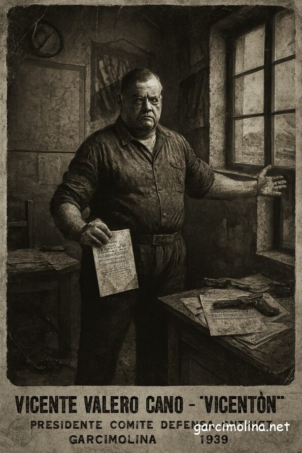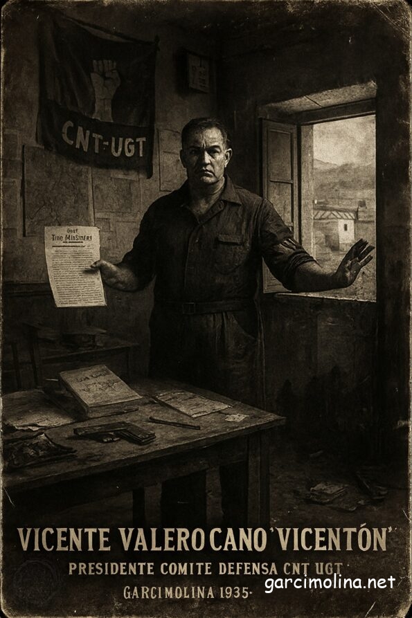 Conocido por el sobrenombre de «Vicentón» (presencia física, imponente y un carácter temido y respetado), era el presidente del Comité de Defensa y de la Colectividad de la CNT y UGT en Garcimolina. El expediente lo pinta como el principal ideólogo y ejecutor de la transformación revolucionaria en el pueblo.
